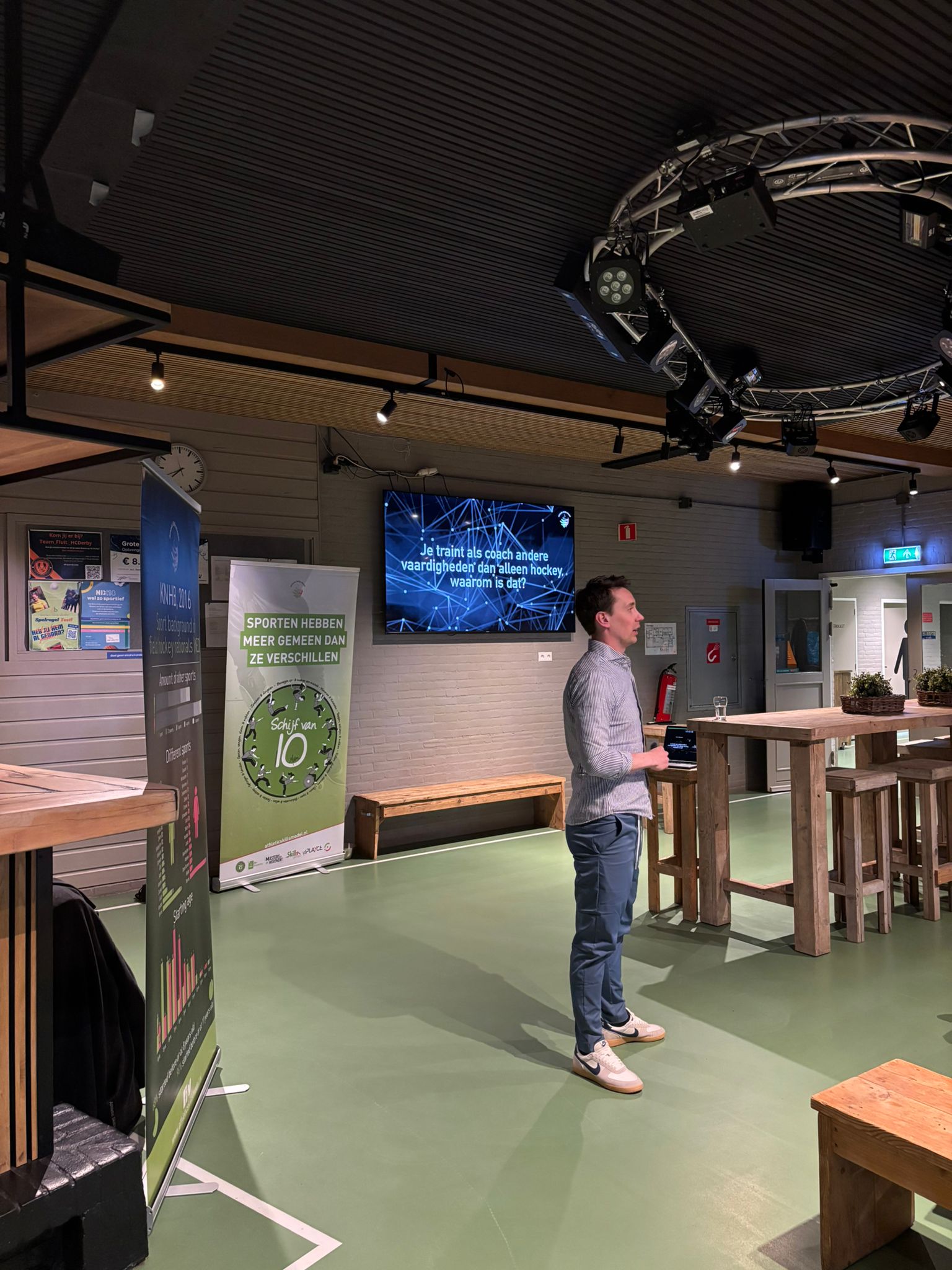 De workshop bestond uit een theoretisch deel, waarbij de focus vooral lag op waarom het belangrijk is om verschillende sporten en spellen te doen en wat de effecten zijn op lange termijn.
